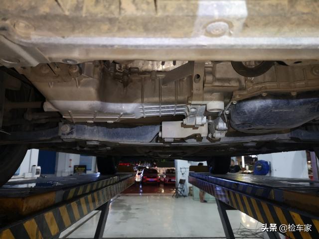 变速箱油底壳处检测,也并未发现有修复或者漏油情况,整个底盘部分检测,并未发现有啥异常的亮点,这里篇幅有限就不一一列举了。到了这里,今天的检测就到这里了,该跟粉丝汇报车况了。