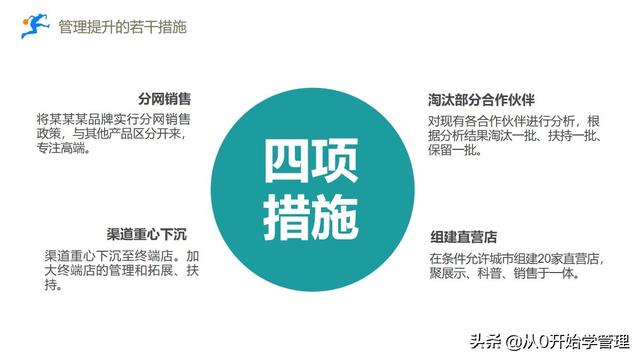 四项措施:分开网络销售,下沉渠道重心,淘汰部分合作伙伴,建立直营店。