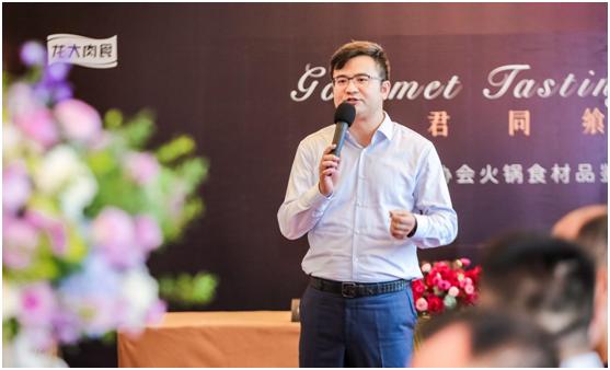 品鉴会开始,龙达肉食董事长鱼雨首先向各位嘉宾表示欢迎和感谢。随后,于先生介绍了肉食的发展、聚焦食品的战略以及未来的路径布局。
